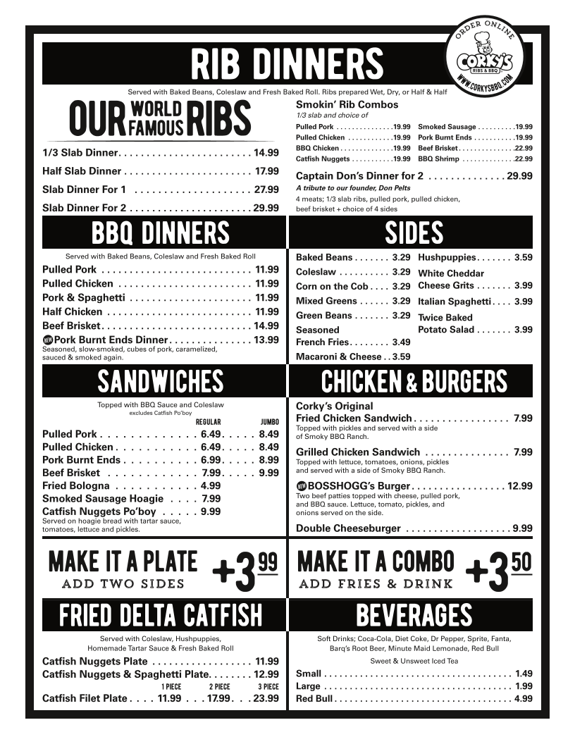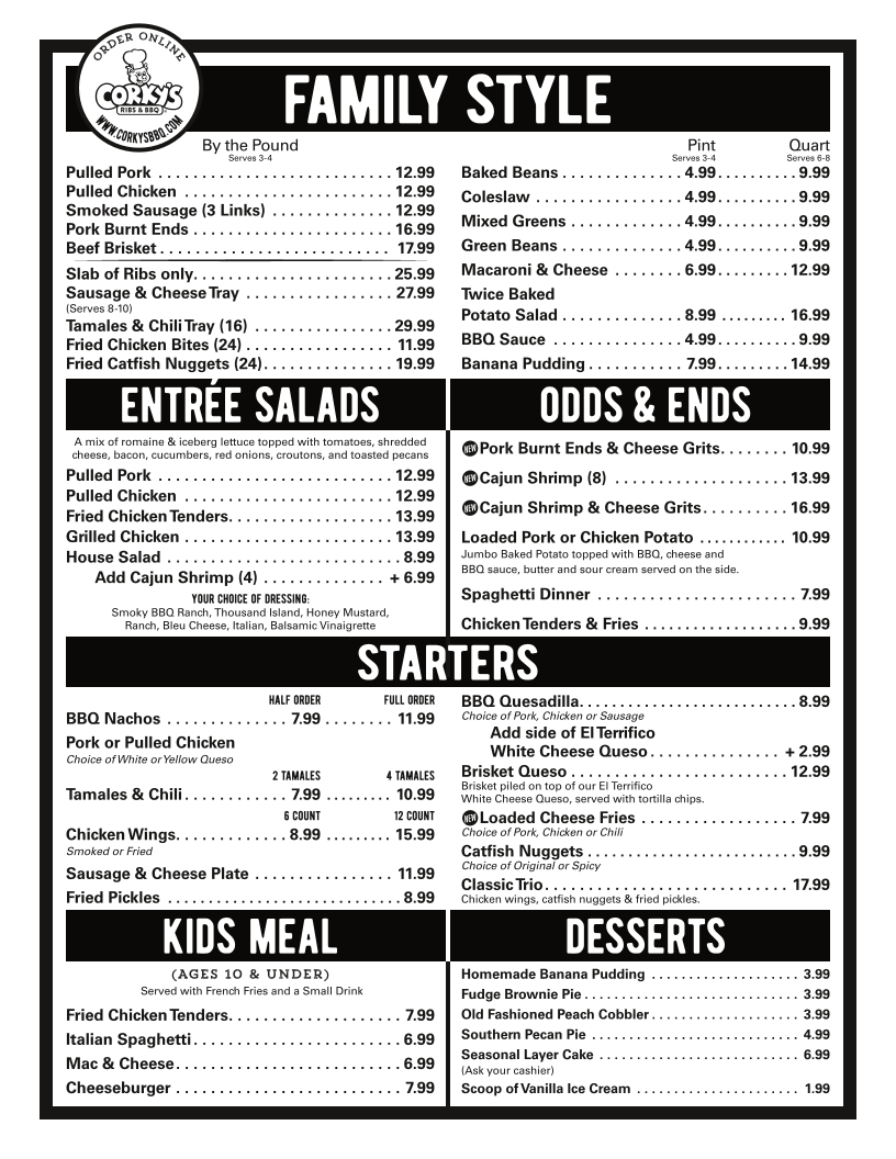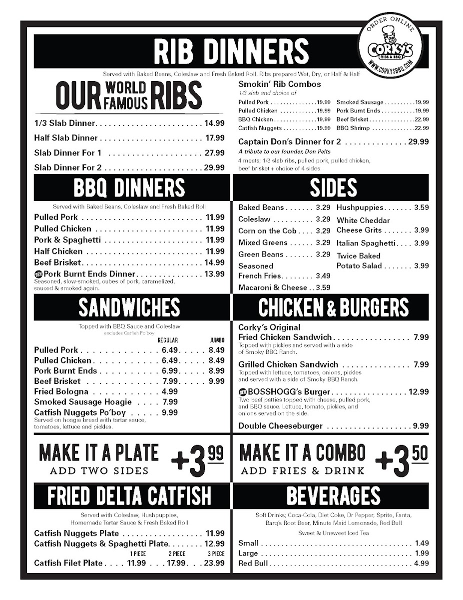 Introducing the menu at Corky's Ribs And BBQ is a savory adventure that stands out in the heart of Cordova, TN. The essence of southern comfort food is brilliantly captured in their selection of hearty dishes.